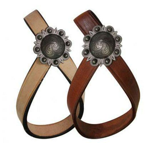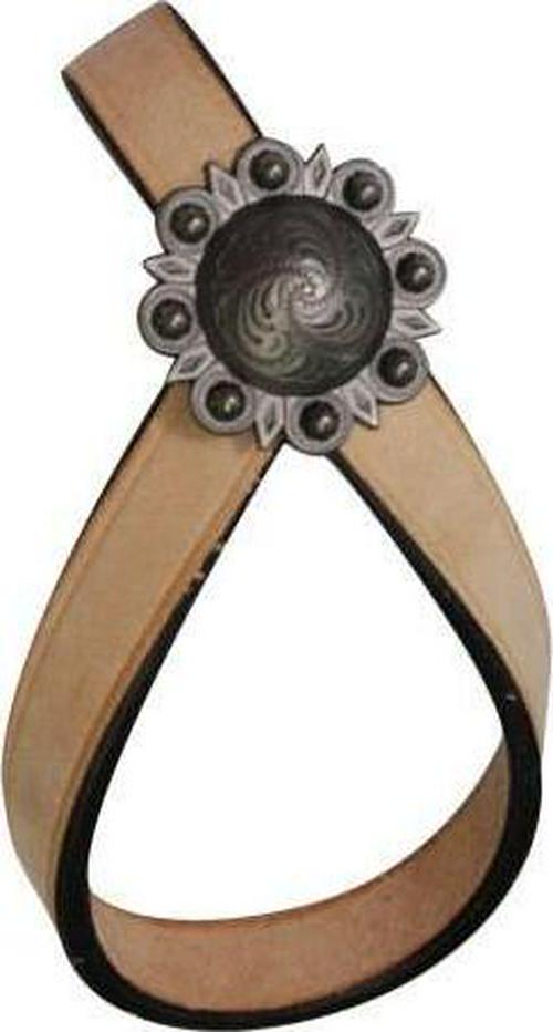 Leather Tie down Keeper. This leather tie down keeper features 3/4″ leather accented with an engraved silver concho. Keeper measures 4″ long.Thanks for looking at our items!