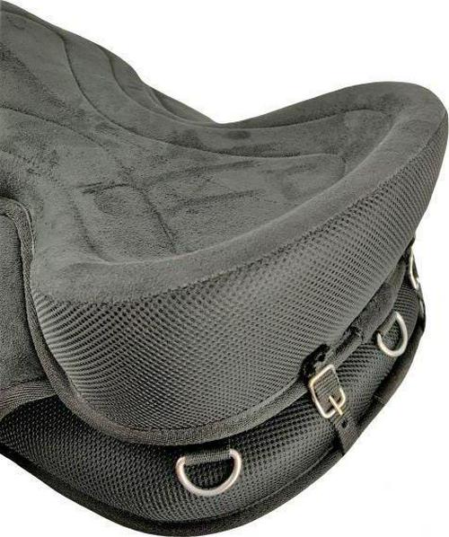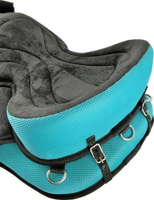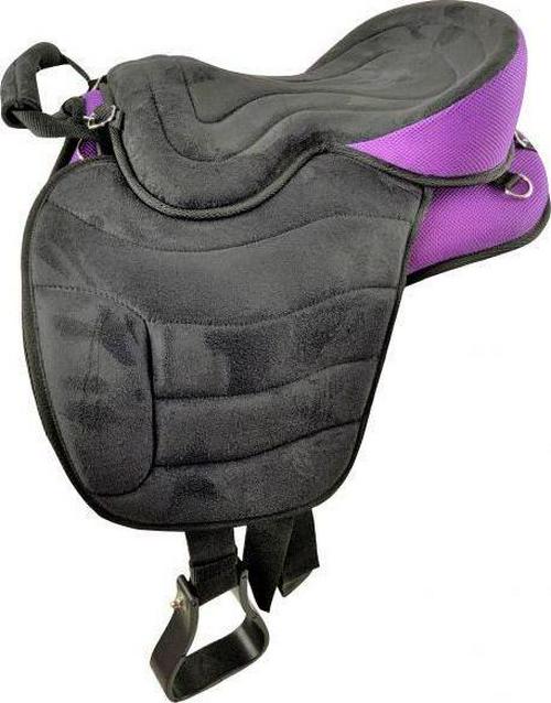 Padded Suede Top Soft Saddle, with pommel handle and fleece bottom. Features include- flexible & lightweight treeless, adjustable and removable stirrups, fleece bottom, and standard western riggings. Under 10 lbs.Thanks for looking at our items!