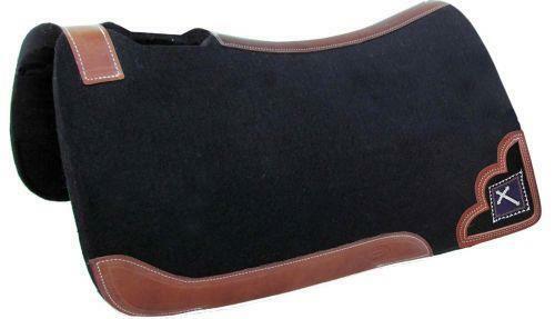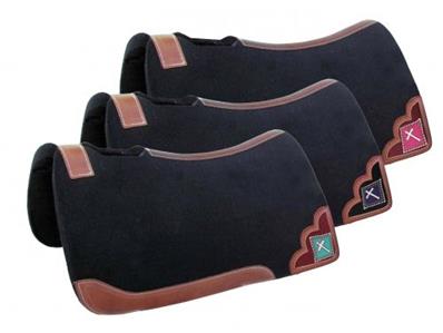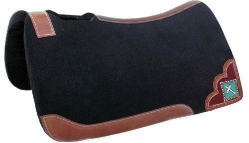 ® 32″ X 31″ x 1″ felt pad with beaded cross inlay. This pad features 1″ thick black, heavy duty blended felt with a vented wither and a leather reinforced spine that is contoured to fit the horse.