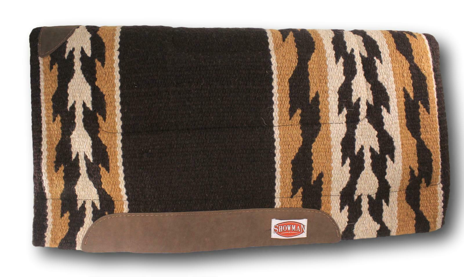36″ x 34″ Woven wool top saddle pad with fleece bottom. This saddle pad features a woven wool top and a fleece bottom with oversized top grain wear leathers.