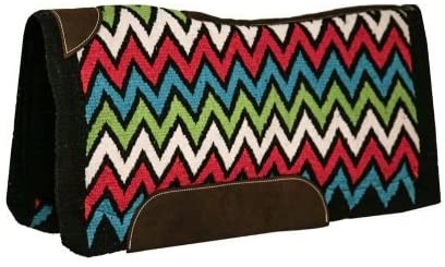 34″ x 36″ x 3/4″ memory felt saddle pad with woven wool Chevron design top. Durable woven wool top with reinforeced leather spine and oversized wear leathers. Countoured to fit the horse.