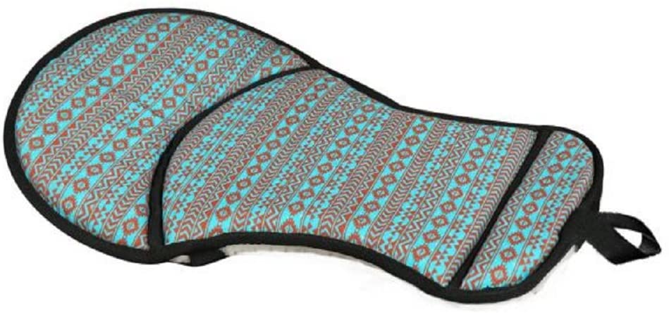 ® Teal and brown Navajo diamond print seat saver with fleece bottom. Measures 21.5″ x 12″.