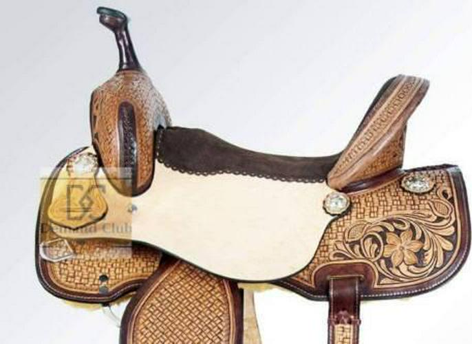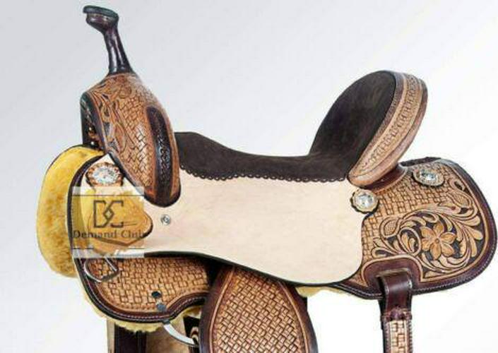 Natural Cowhide Western Leather Horse Saddle Comfy SEAT Pleasure Trail Barrel Racing Hand Tooled Premium Saddle TACK Set Bridle Breast Collar